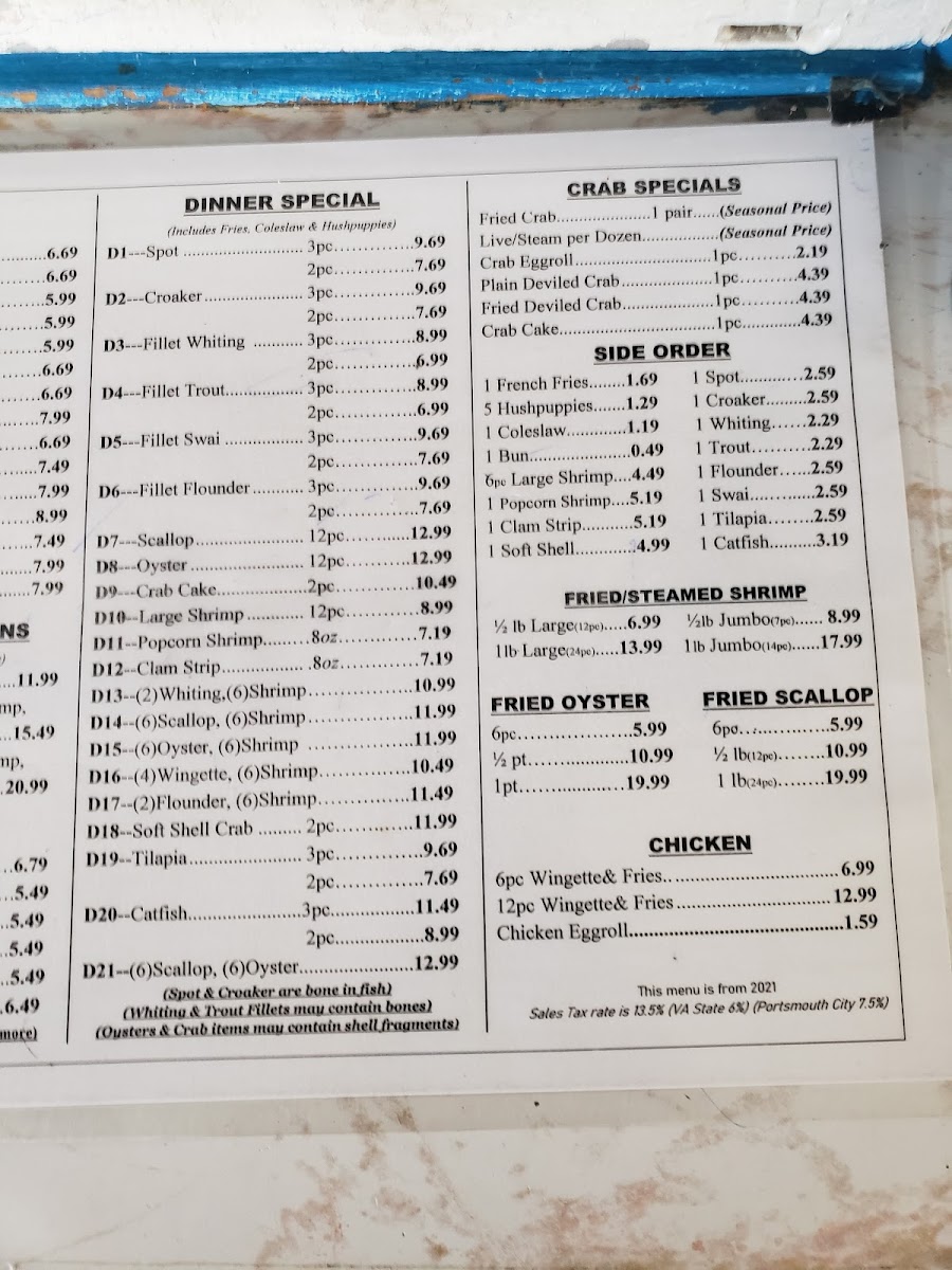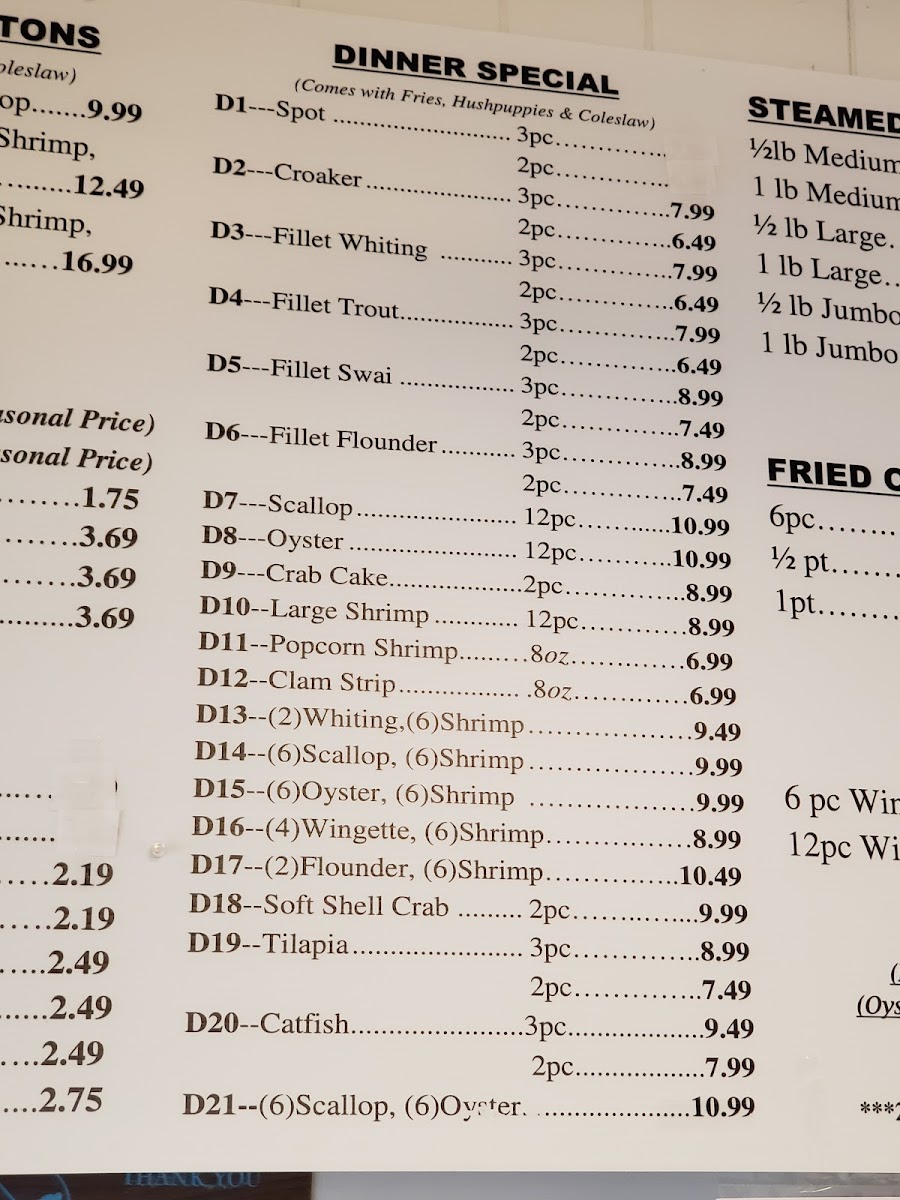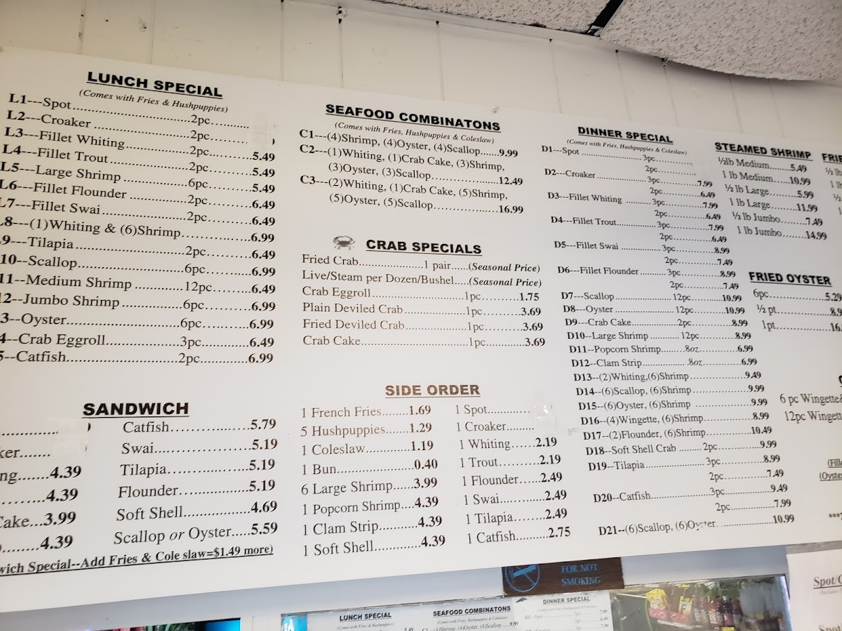 This menu is perfect for relaxing at midday or unwinding after a busy day, capturing the simple pleasure of well-prepared fried seafood and classic southern comfort dishes. The easygoing atmosphere and efficient service make it just as suitable for takeout as for sitting down and savoring your meal.